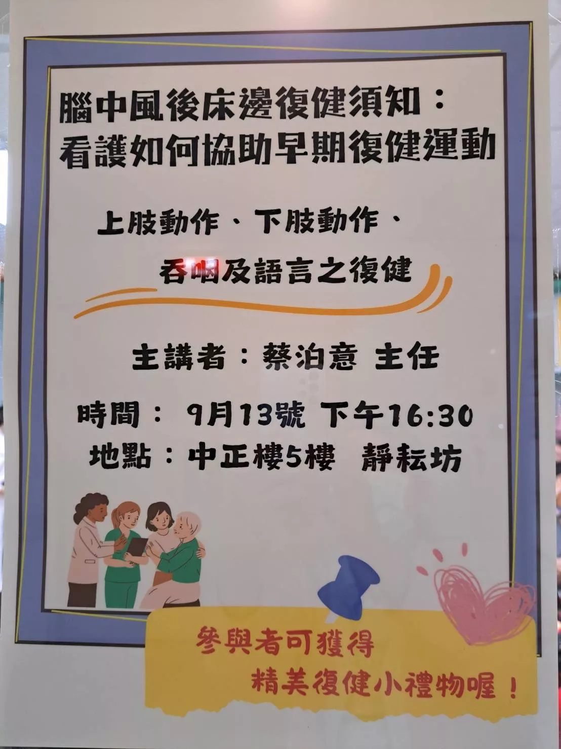 蔡泊意醫師教導看護,如何操作動作、語言、與吞咽的床邊復健